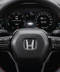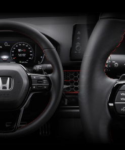 Honda Civic 2025 cũng được cải tiến với phần vô-lăng 3 chấu bọc da với cảm giác cầm nắm vừa tay hơn. Đáng chú ý, mẫu xe này cũng có thêm nhiều phím bấm chức năng trong gói an toàn Honda Sensing hỗ trợ người lái.
